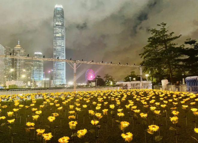 全景展现中国共产党百年奋进历程同时,通过多媒体灯光、投影灯以及红外感应系统等技术手段的综合运用,香港添马公园内的“紫荆花”路如梦似幻,草坪上布设的红星及圆球灯光装置星光点点,打破虚拟与现实的边界,为市民营造出沉浸式的体验氛围,成功跻身香港新的休闲地标。